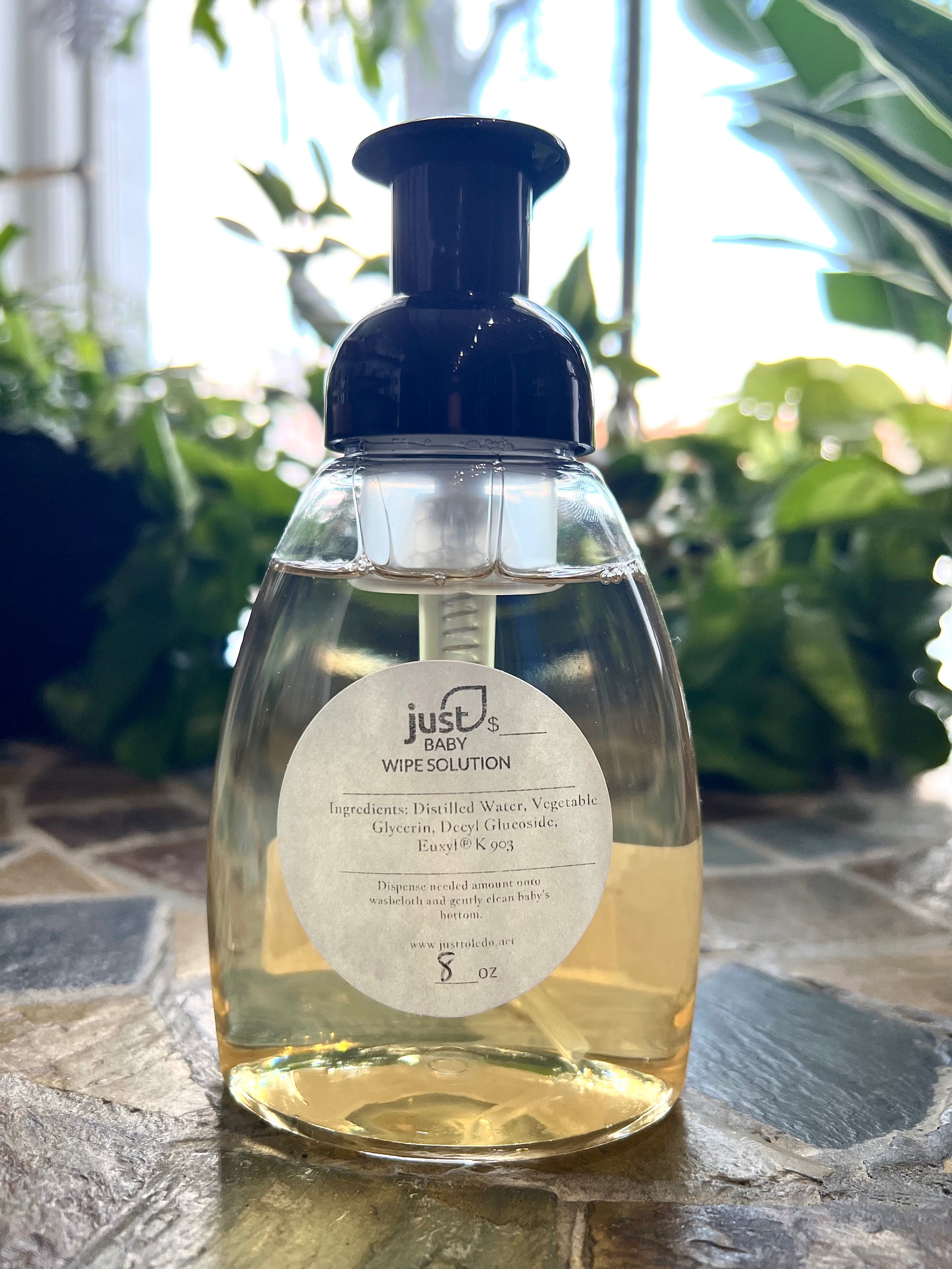 Our Baby Wipe Solution has been formulated to help clean up baby sized messes. Our preservative is gentle and safe for babies.