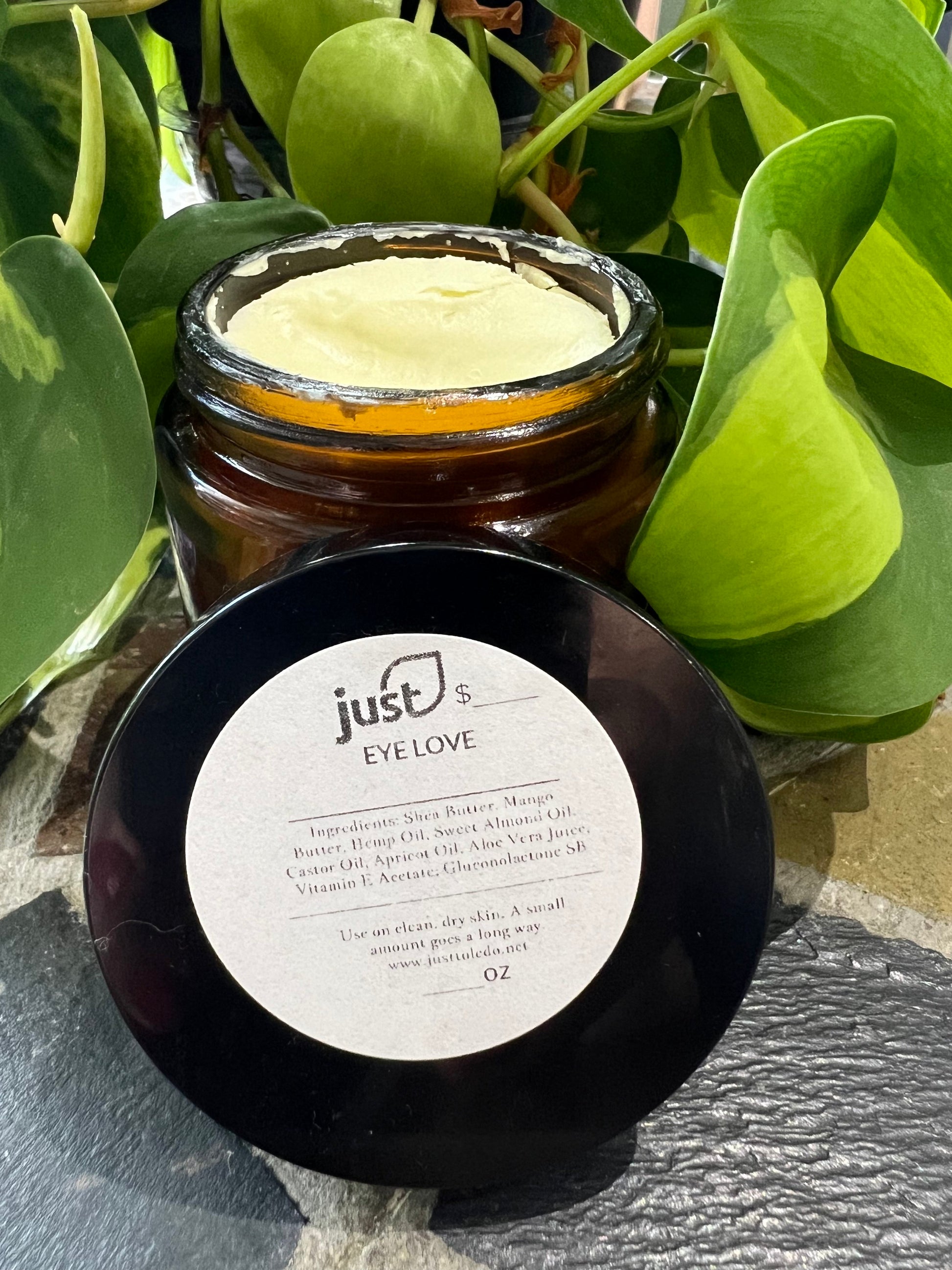 Eye Love Ingredients: Mango Butter, Shea Butter, Sweet Almond Oil, Hemp Oil, Apricot Oil, Castor Oil, Aloe Vera Gel, Vitamin E Acetate, Euxyl PE-9012